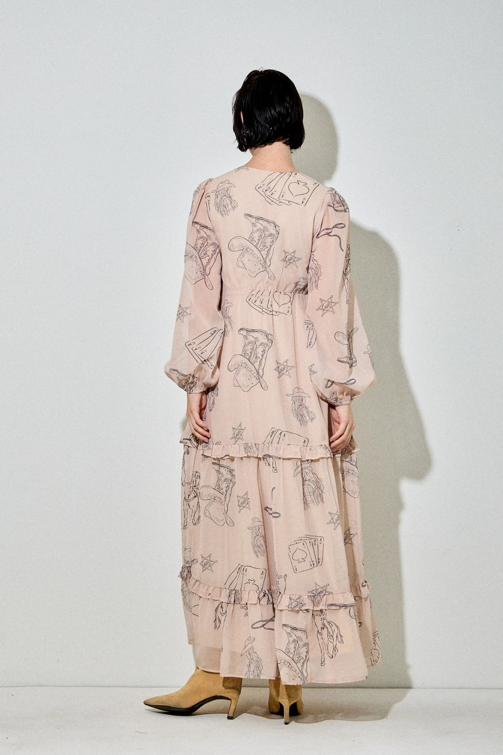 Giddy up in style with our Cowboy Print Deep V-Neck Maxi Dress, the perfect blend of western charm and modern sophistication. This eye-catching long sleeve midi dress features an adventurous all-over cowboy motif, balanced by a flattering deep V-neckline that adds a touch of allure.