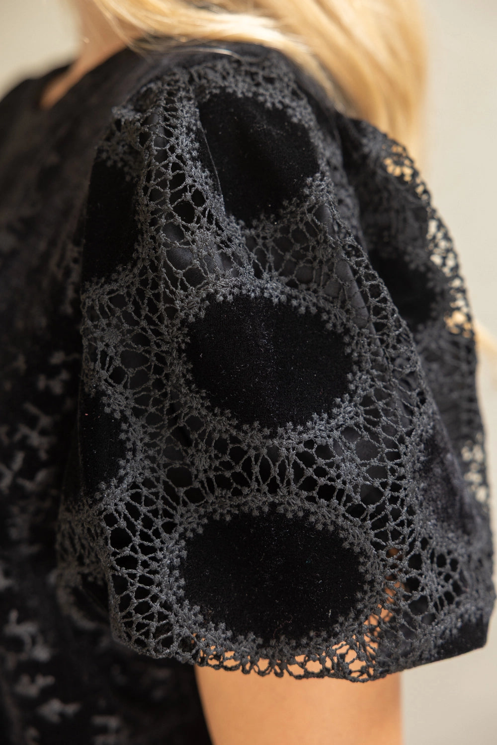 Laced Bubble Sleeve Velvet Jaquard Top – Mod Boutique