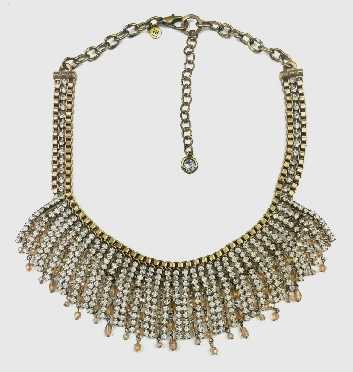 A true testament to our commitment to unique design and superior quality. This necklace with its stunning rhinestone fringe allows you to express your distinctive style and find joy in the things you love