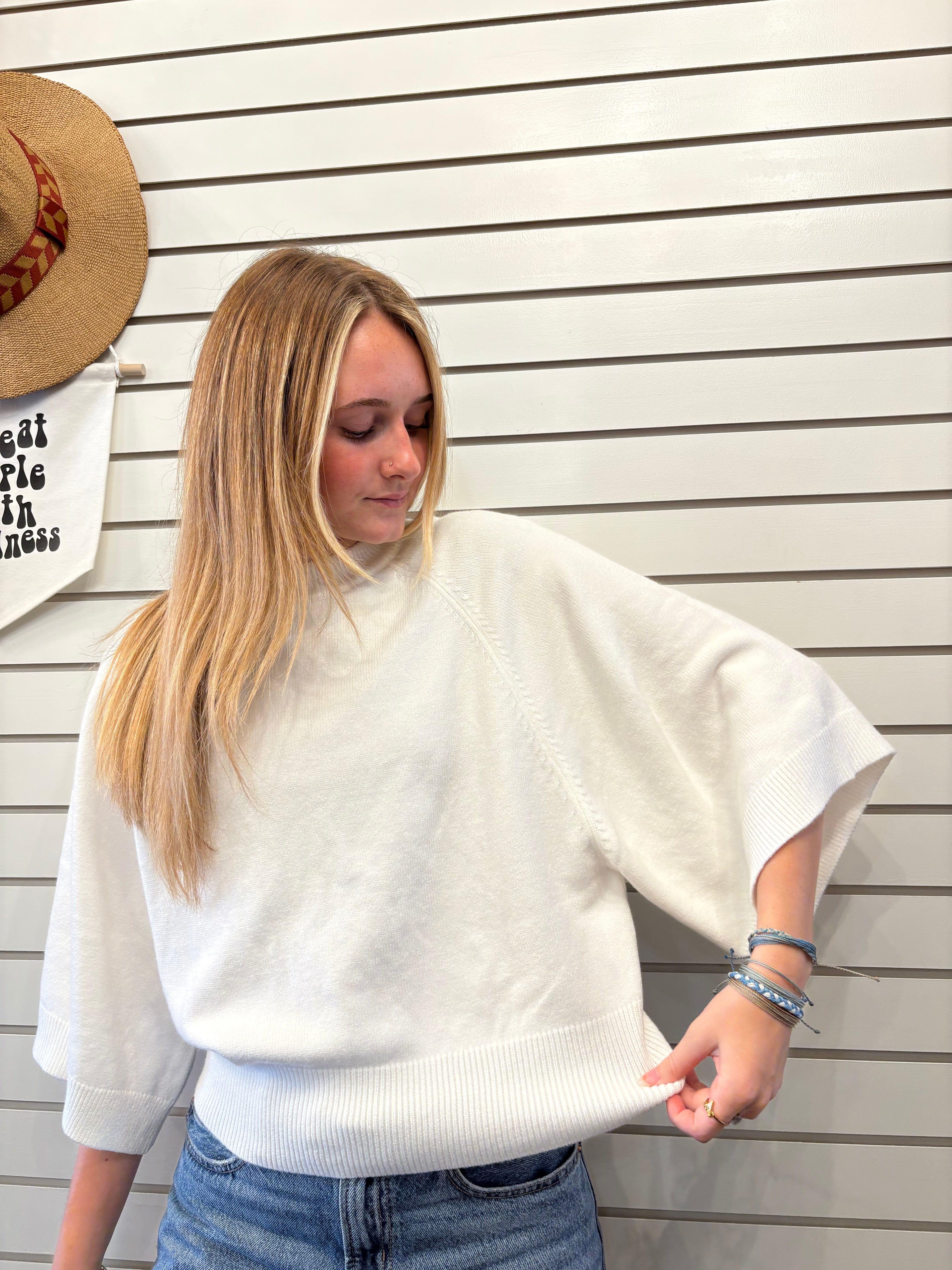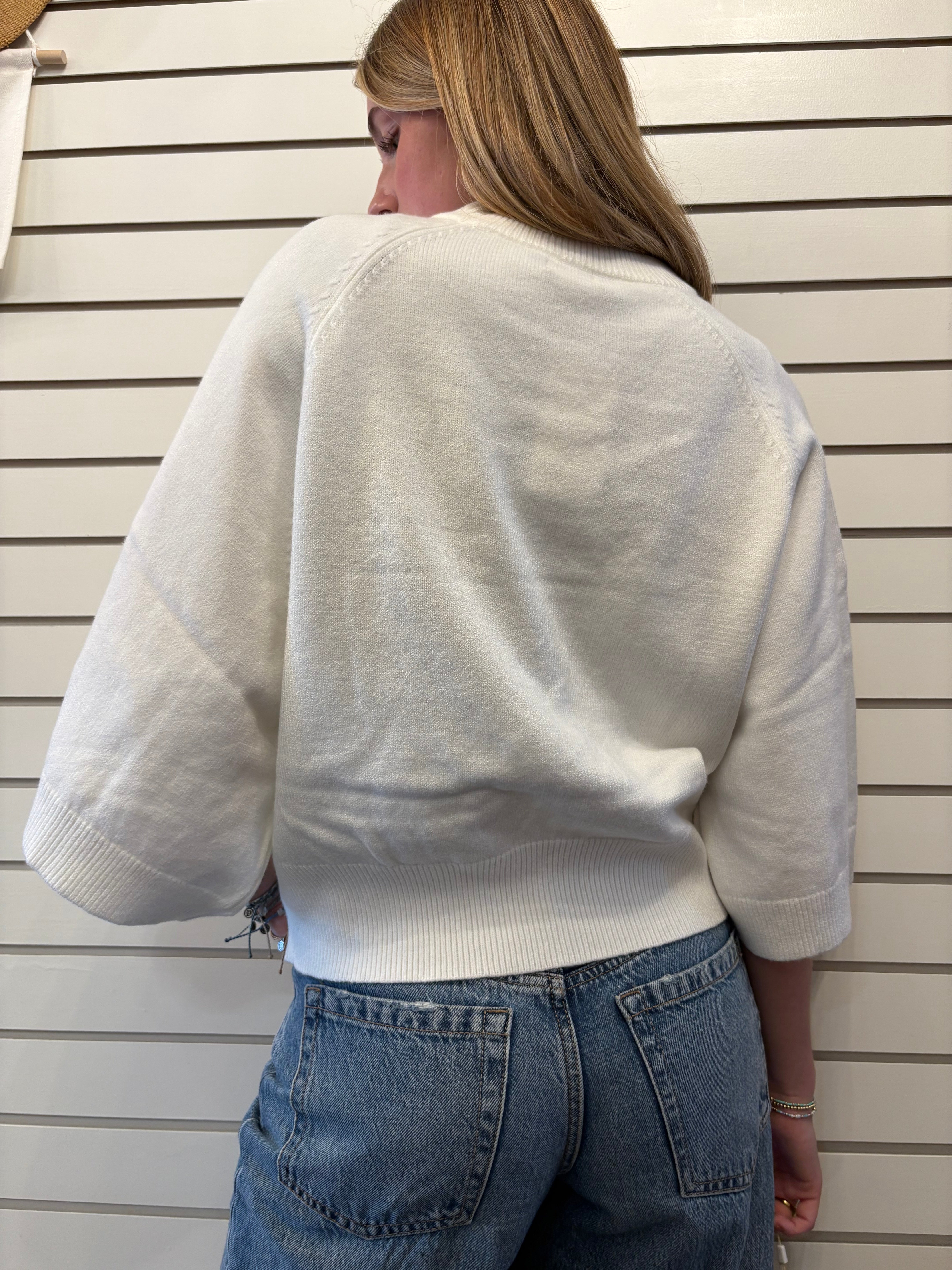 Update your knitwear collection with this beautifully designed short-sleeve sweater. The raglan shoulder and crew neckoffer a timeless fit, while the wide, cuffed short sleeves add a contemporary flair. Crafted from a luxurious and soft blend (, , ), this piece is comfortable enough for lounging but stylish enough for a night out.