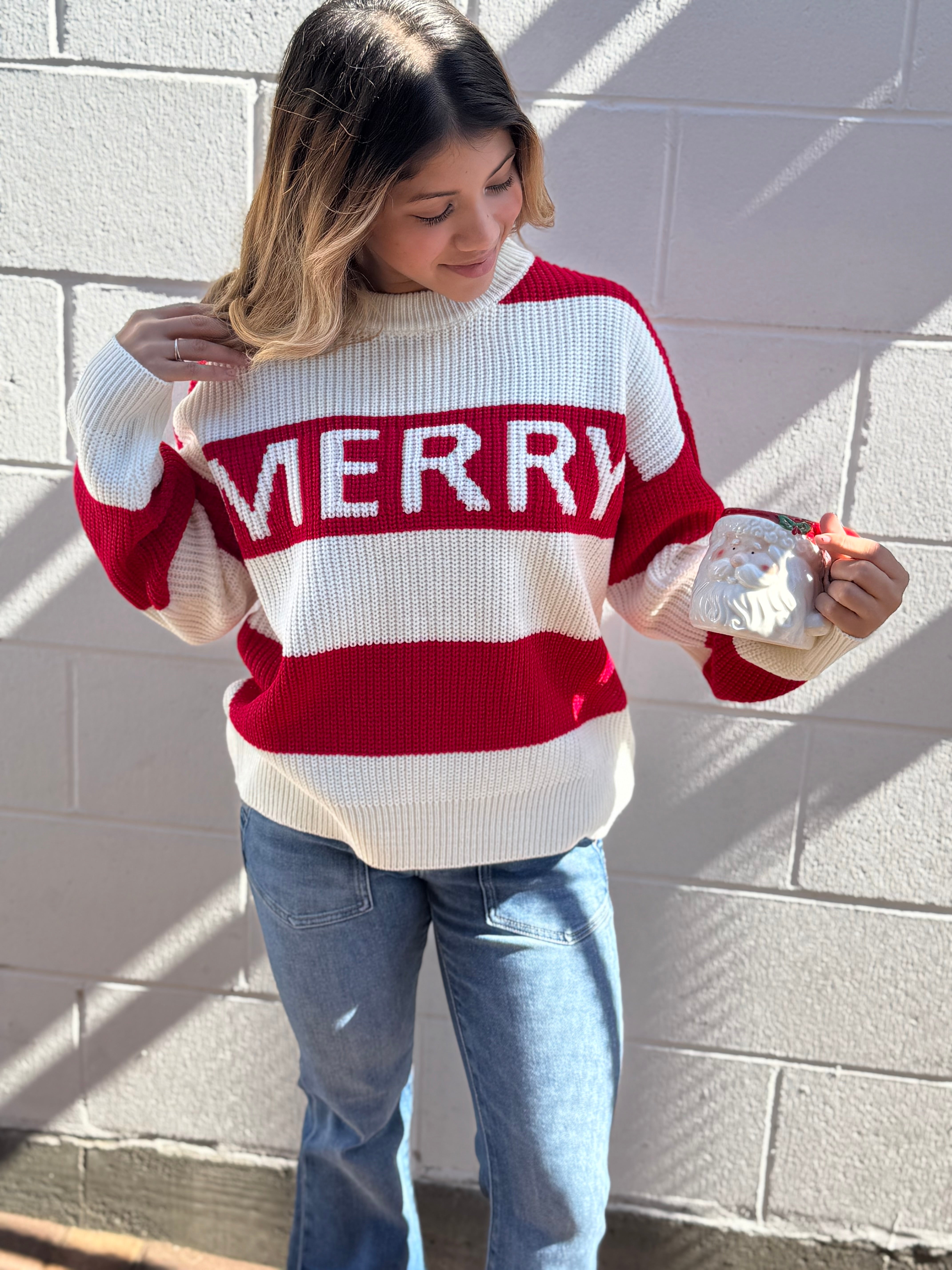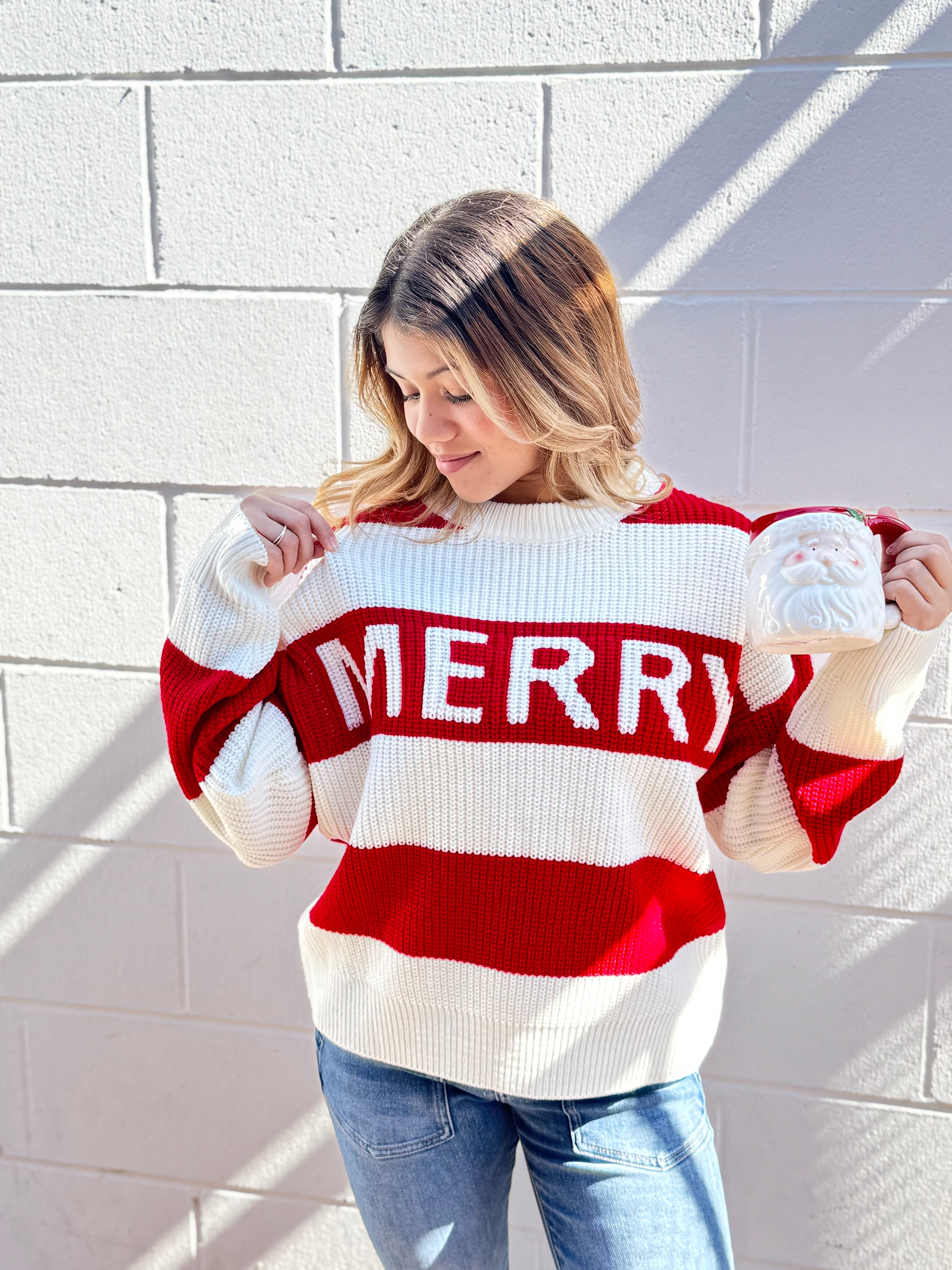 Instantly cozy up your holiday season with this delightful knit. Featuring classic candy-cane red and crisp white stripes, this sweater literally spells out the cheer. Crafted for ultimate softness, it’s your go-to layer for everything from sipping hot cocoa to wrapping gifts under the tree. This is comfort, redefined for the holidays.