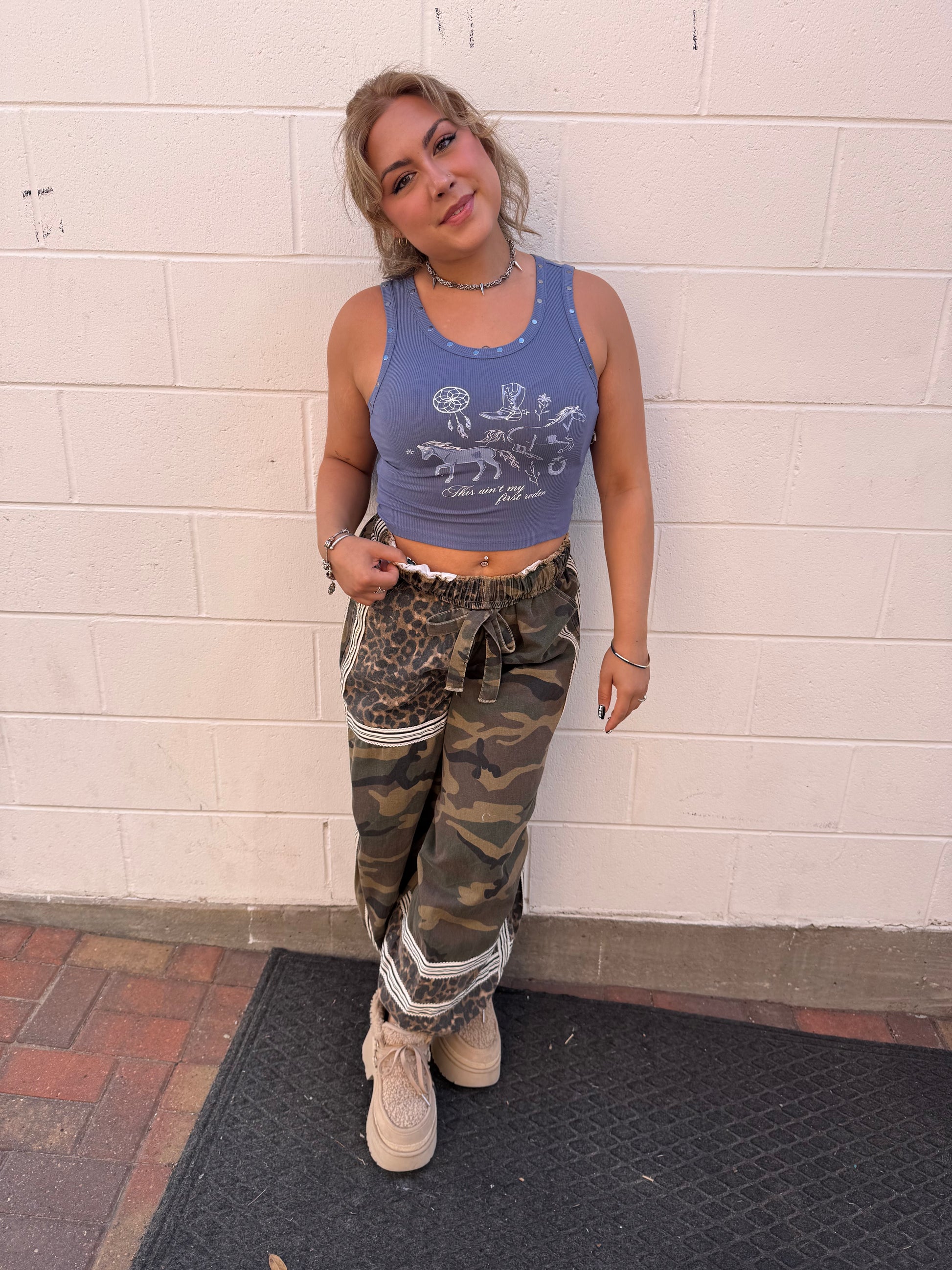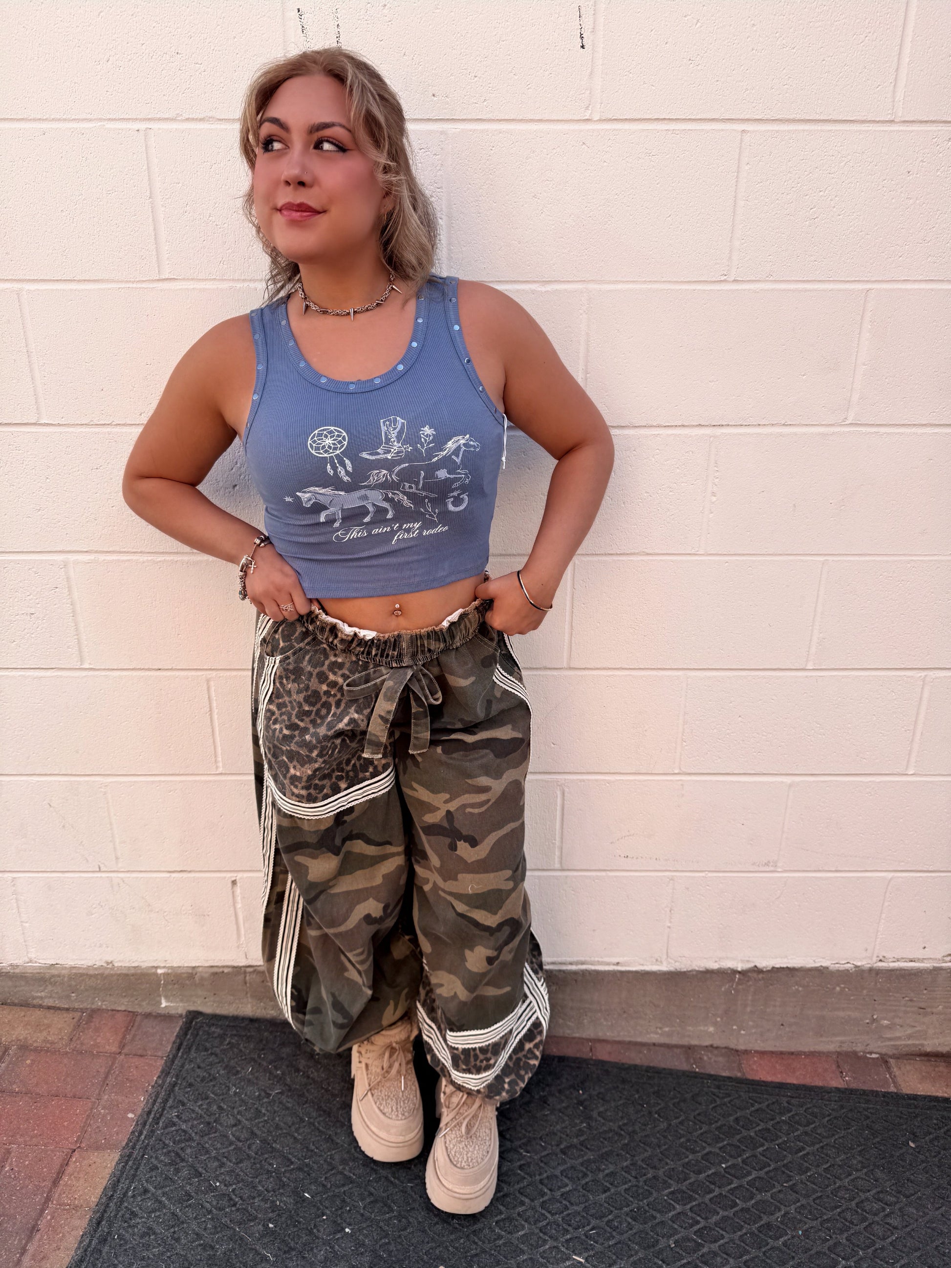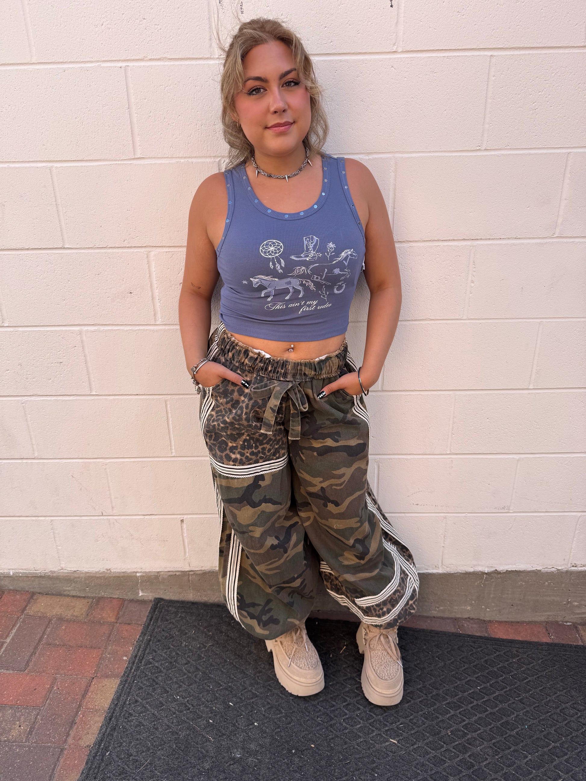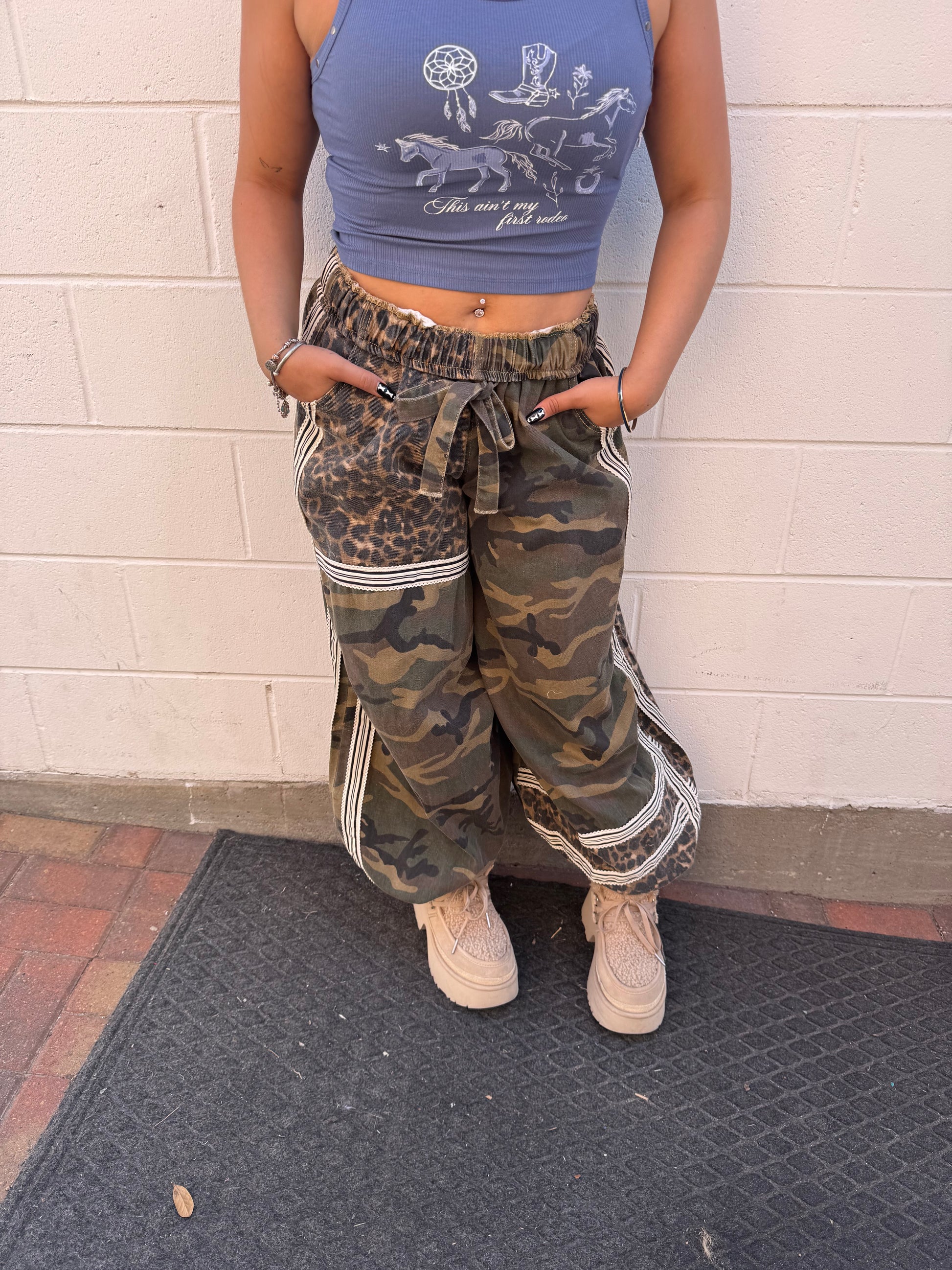 Stay comfortable and stylish in our roomy fit jogger pants. Featuring a bold printed woven fabric and chic contrast band trim. Perfect for casual wear.