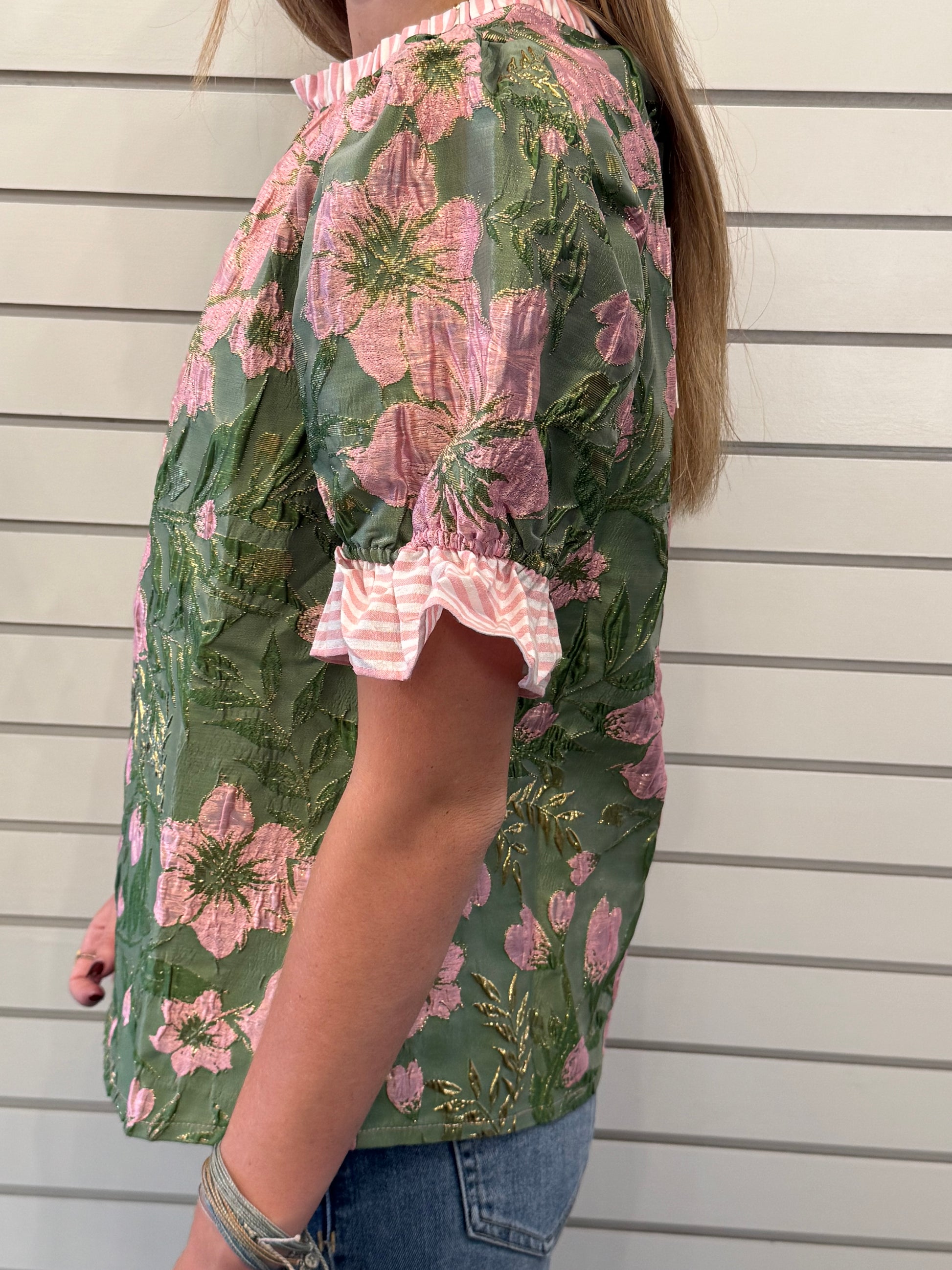 Step into elegance with our Striped Ruffle Detailed Floral Jacquard Top — a stunning blend of feminine charm and modern style. The textured jacquard floral design adds sophistication, while the ruffle details bring a touch of playful movement. Perfect for pairing with tailored trousers for the office, a sleek skirt for date night, or denim for a chic everyday look. Versatile, elevated, and effortlessly stylish.