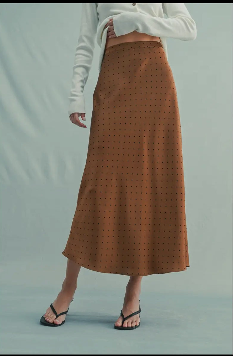 Chocolate/black POLKA DOT SATIN MIDI SKIRT