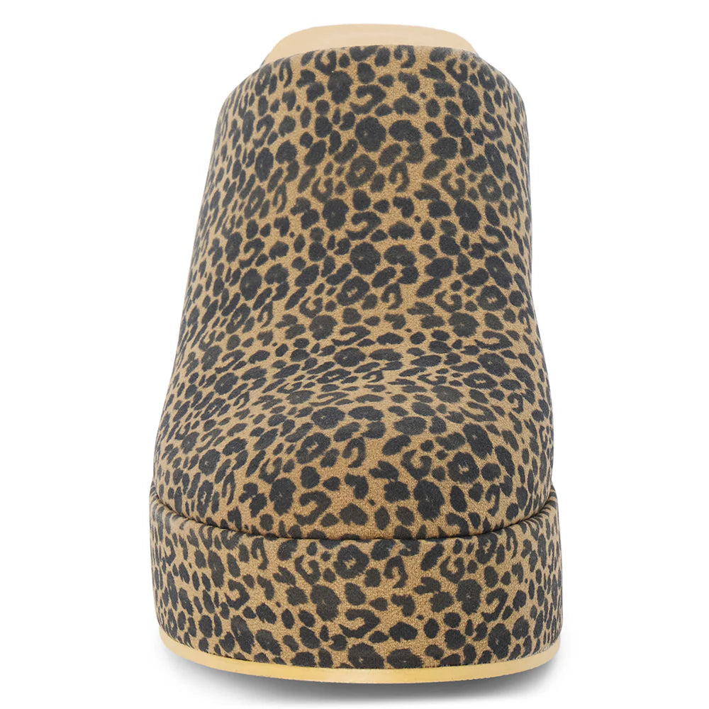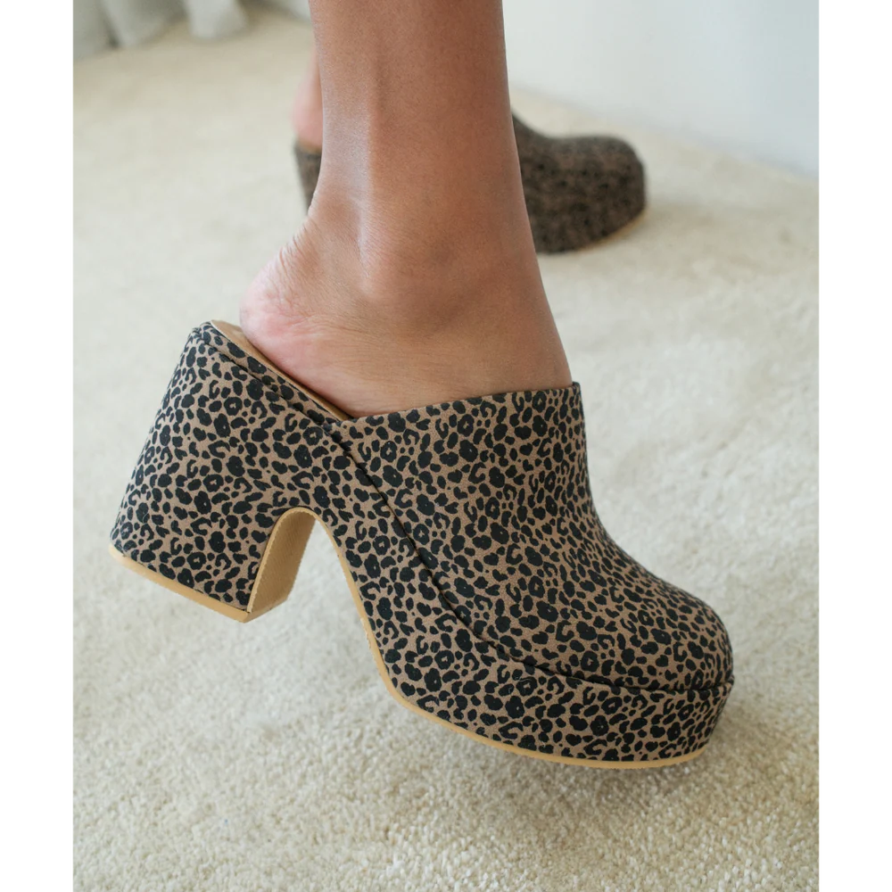 Get the look! Our chunky platform mule in bold vegan leopard print is a must-have. Easy slip-on style with a comfortable padded insole.